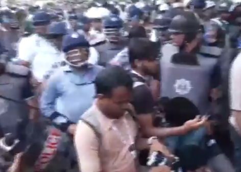 जैसे ही प्रदर्शनकारीयों कि भीड़ ने पार्क स्ट्रीट पहुंची माहौल गरमाने लगा, प्रदर्शनकारियों ने पुलिस बैरिकेड तोड़कर आगे बढ़ने की कोशिश की, जिसपर पुलिस ने लाठीचार्ज कर दिया, कुछ ही मिनटों में पार्क स्ट्रीट चौराहा रणक्षेत्र में बदल गया | विपक्ष के नेता शुभेंदु अधिकारी, अग्निमित्रा पॉल, शंकर घोष, अशोक डिंडा समेत कई भाजपा विधायक सड़क पर धरने पर बैठ गयें |