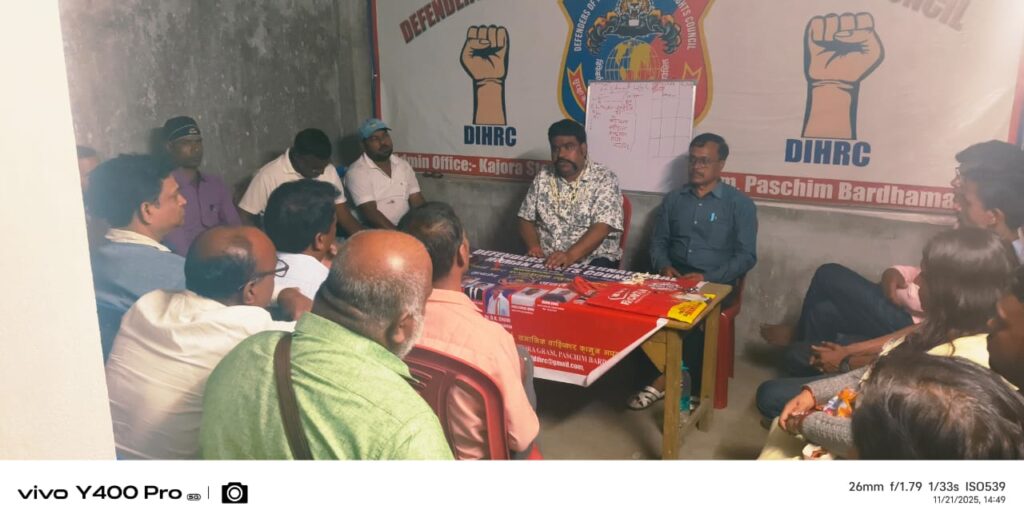 काजोंड़ा : शुक्रवार दिनांक 21/11/2025 को काजोंड़ा ग्राम कार्यालय मे किया गया बैठक | डिफेंडर्स ऑफ इंटरनेशनल ह्यूमन राइट्स काउंसिल ने मानवाधिकार जागरूकता अभियान कि बैठक कि |